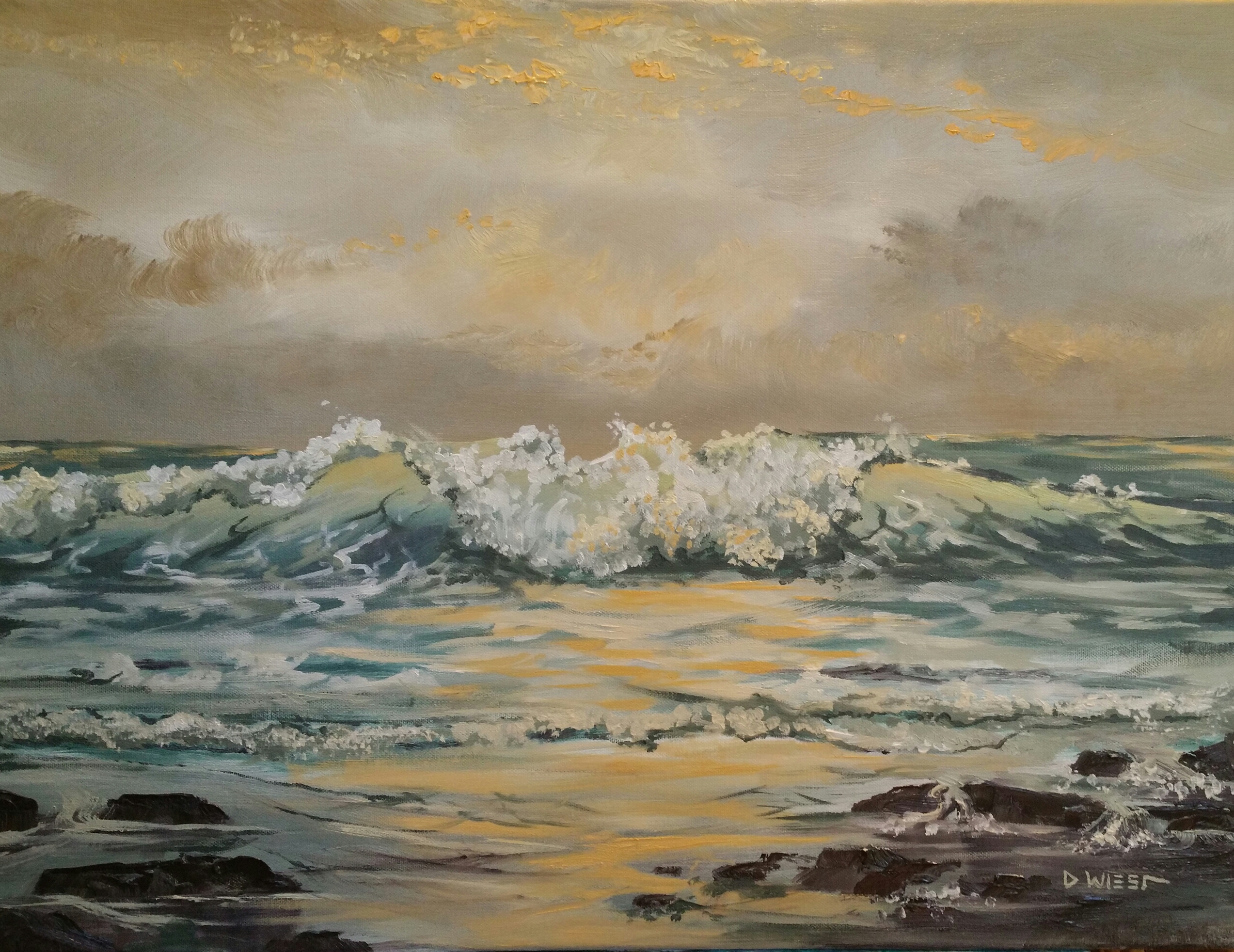 Years later I was re-visiting boyhood sights and returned to the city of Laguna Niguel. I paused at one of the many galleries specializing in local art talent and noticed several featured works by a prominent artist named Robert Wood. A moment later I spied a photo of this artist and was stunned…this was the very same gentleman, who without knowing it, had inspired me with a lifelong passion for painting seascapes!