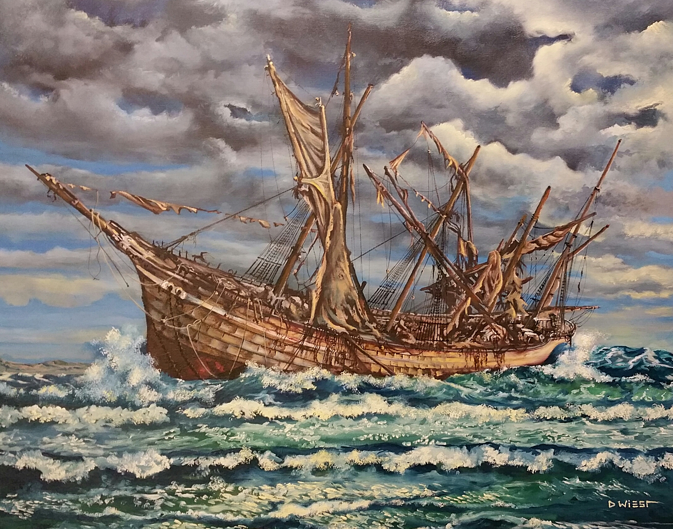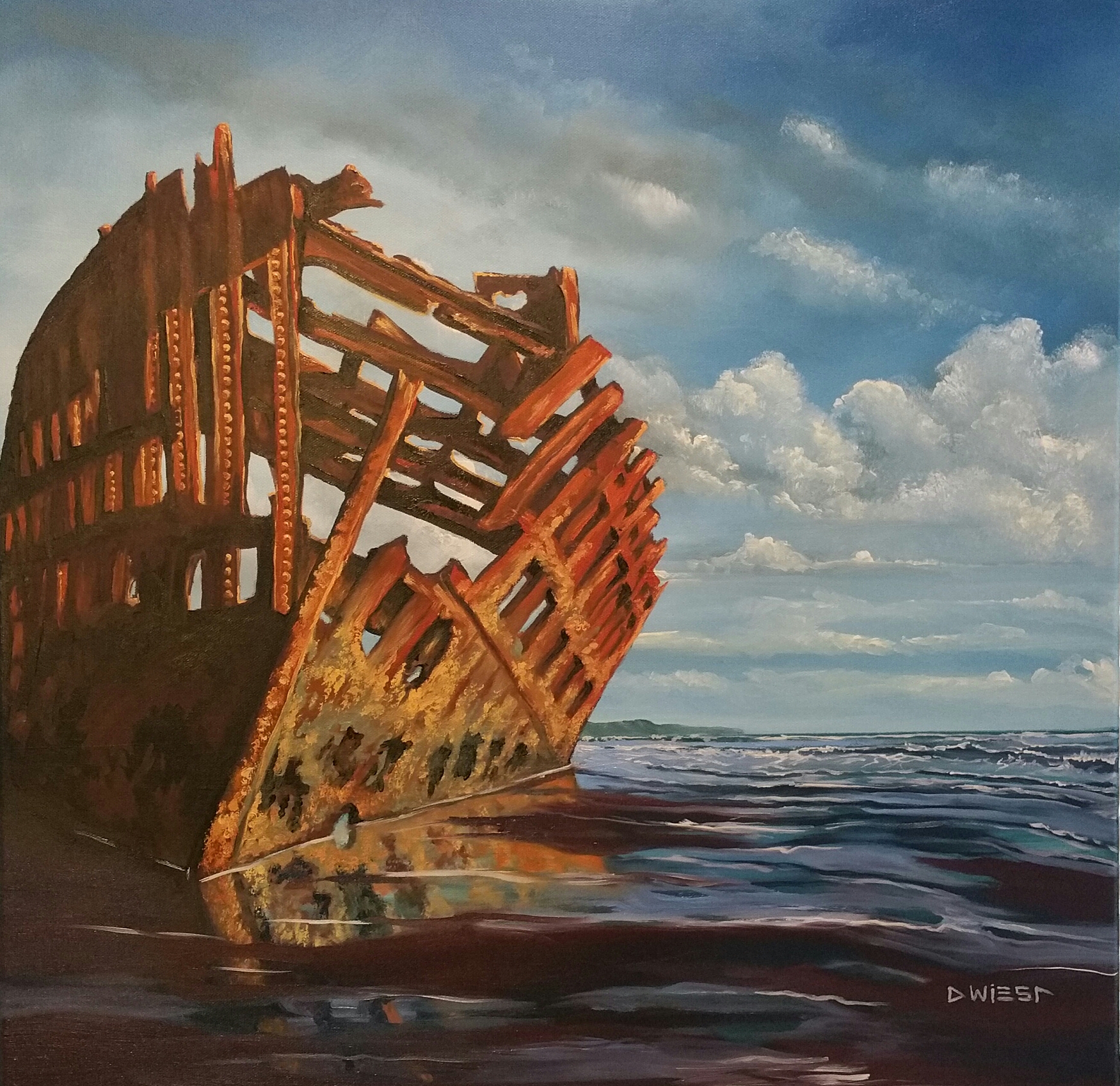 Later I learned the beached wreck was an extremely popular tourist destination in the early 1900’s. That fact inspired me to paint her as she might have appeared before the grounding incident. Unfortunately, it was years before the introduction of computers or the Internet, so this made research a somewhat daunting task. For this reason, the idea was pushed aside…but never forgotten.