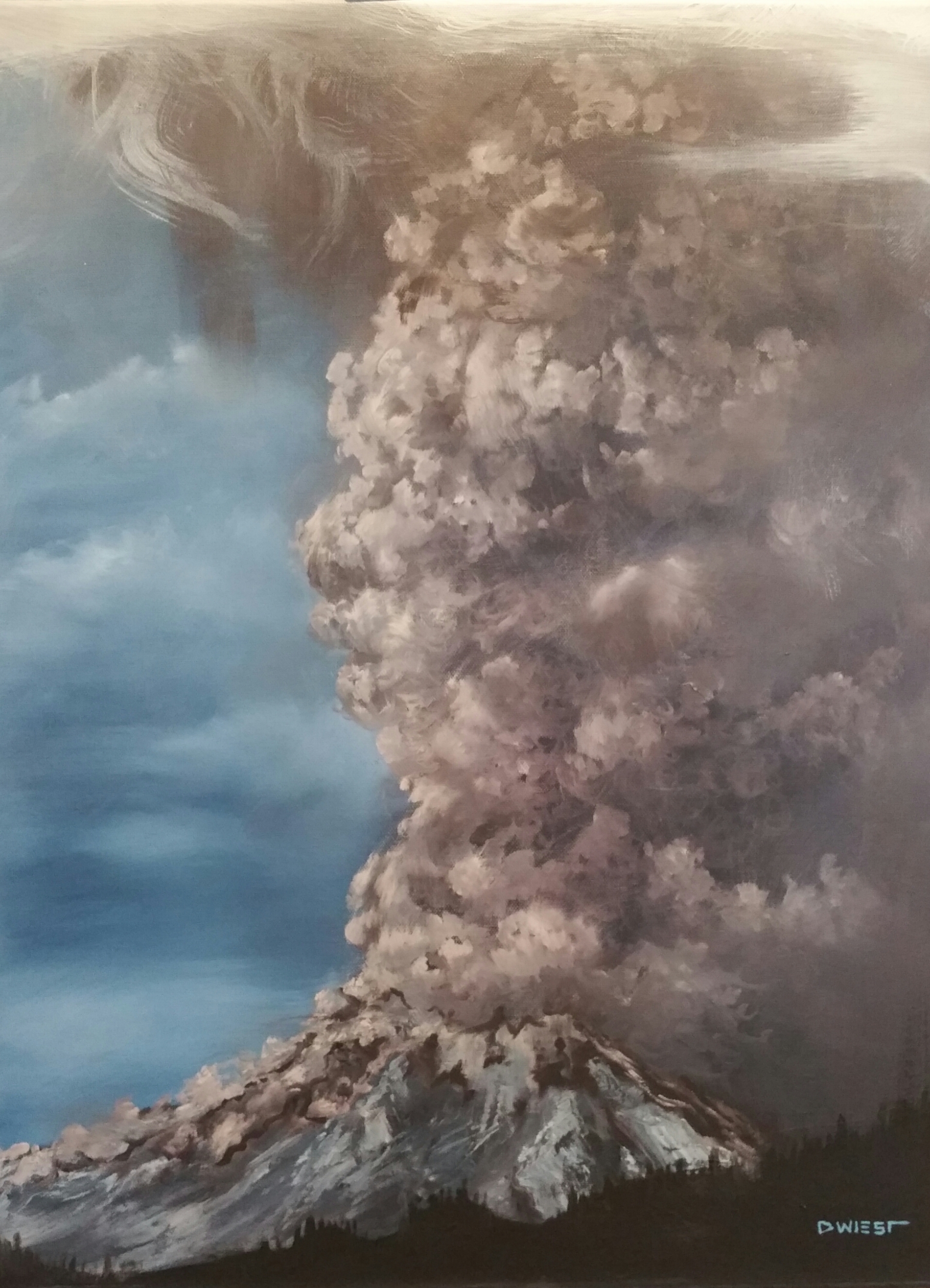 I will never forget the initial shock that rippled through my body as my eyes became transfixed on a gigantic column of ash rising from the now flattened summit of mount St Helens! To say this column was massive would not adequately describe the scale of its immensity. Though the mountain was 52 miles from Portland, it felt as though I was less than 300 yards away. I was high up on a bridge, so my view was completely unobstructed as I watched ash and rock spew out and rise upwards with indescribable convulsions of energy and speed.